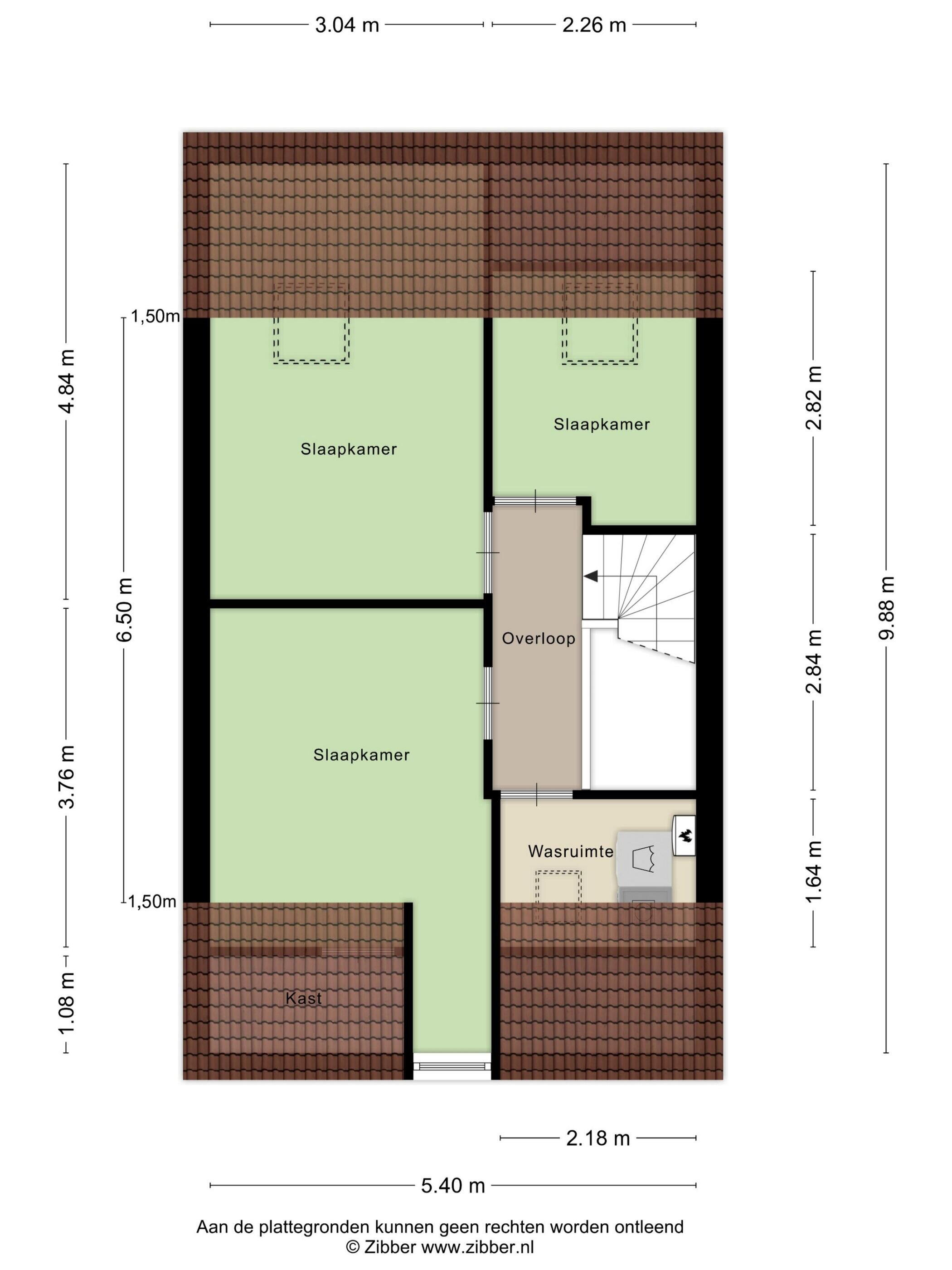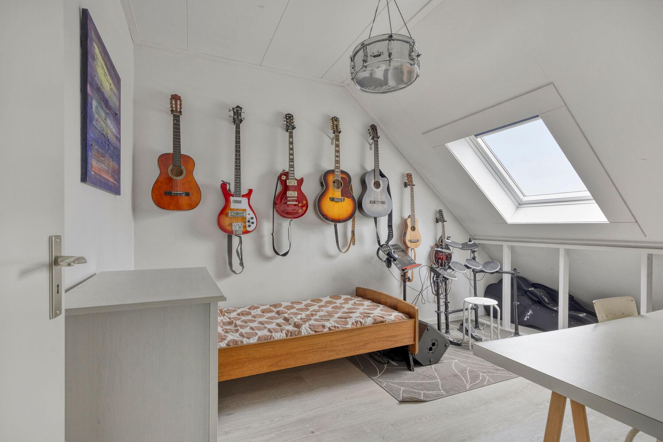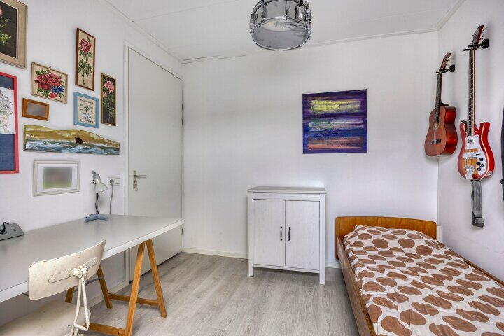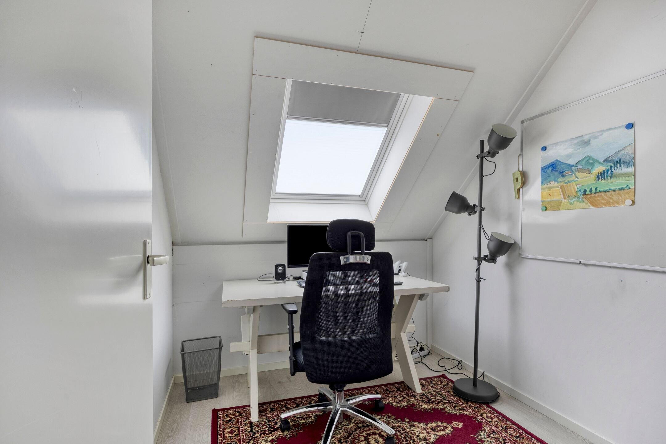 Drie slaapkamers, ruimte met witgoedaansluitingen en CV-ketel en veel bergruimte achter de knieschotten. Dankzij twee extra dakramen en een dakkapel hebben alle slaapkamers voldoende daglichttoetreding.