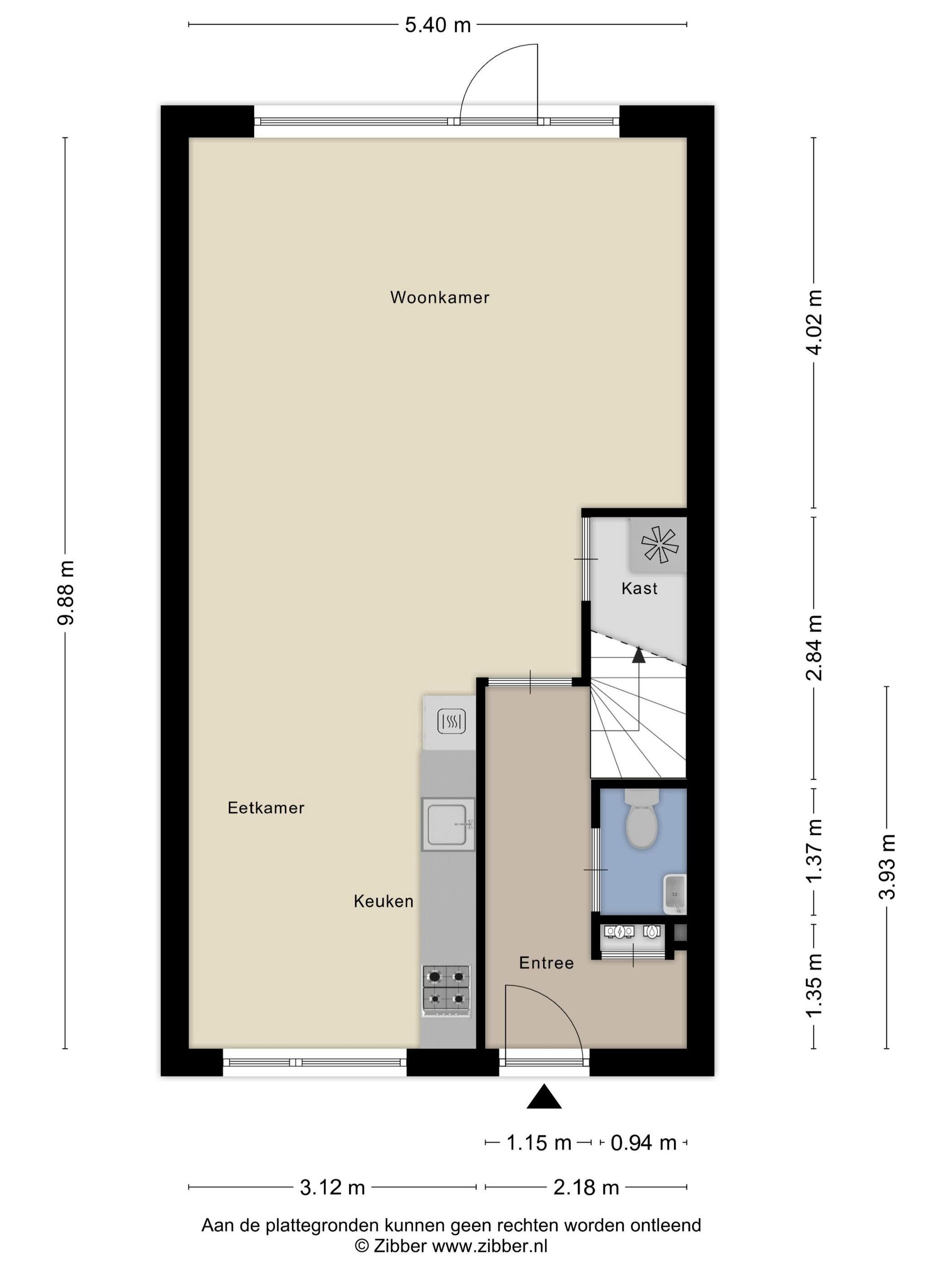 - 54 m² (9,30 meter diep en 5,80 meter breed)